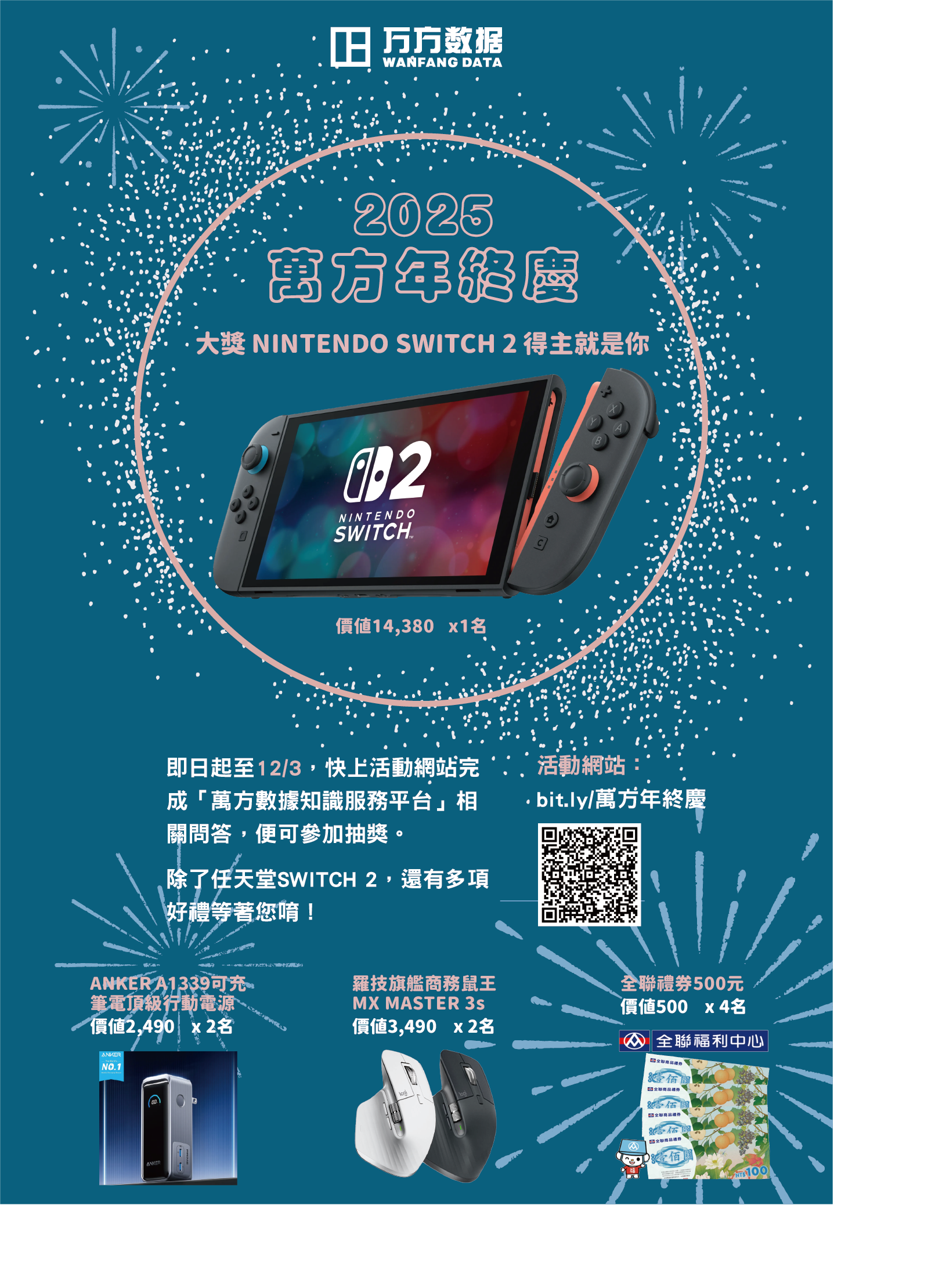 活動結束後,抽獎結果將在隔日12月4日公告於本網站和萬方數據台灣facebook粉絲專頁。
